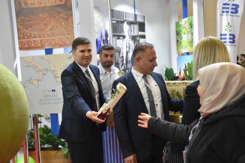 Ziyaretçilerin ilk günden yoğun ilgi gösterdiği Edremit standı misafirlerini ağırlamaya devam ediyor. Edremit Belediye Başkan Yardımcısı Tayfun Canlı, İnsan Kaynakları ve Eğitim Müdürü Tamer Acar, Basın-Yayın ve Halkla İlişkiler Müdürü Güngör Güneş, Kültür Müdürü Cumhur Dokur, Cenaze İşleri Birim Sorumlusu Niyazi Sarıkaya ve belediye görevlileri standı ziyaret edenlere zeytin fidanı hediye ederek Edremit’in sahip olduğu zenginlikleri tanıtıyor.
