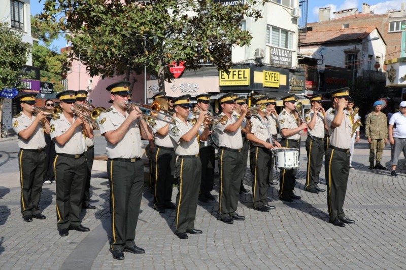 9 Eylül Edremit’in kurtuluşu nedeniyle ilk olarak Cumhuriyet Meydanı’nda tören gerçekleştirildi. Kaymakamlık, Garnizon Komutanlığı ve Belediye Başkanlığı’nın Atatürk Anıtı’na çelenk sunmasıyla başlayan törende, saygı duruşu ve İstiklal Marşı’nın ardından program resmi protokolün katılımıyla devam etti.