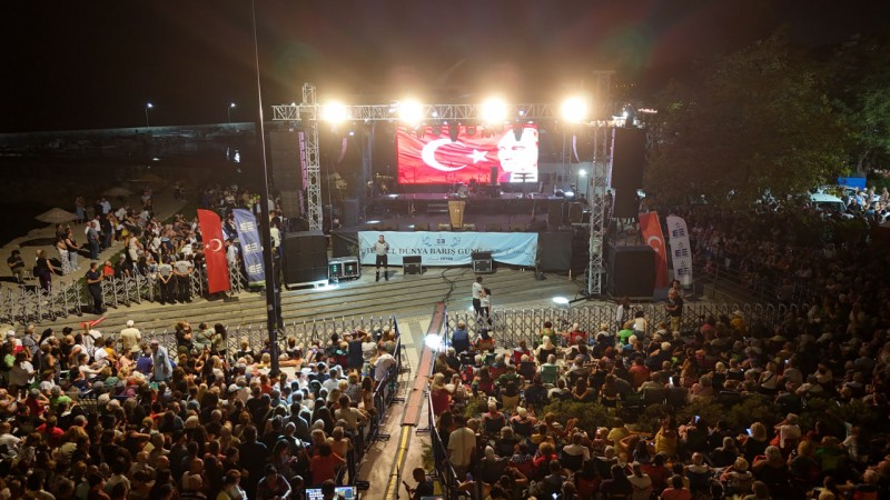 Gecenin sonunda ise Anadolu Rock Müziği’nin ünlü ismi Haluk Levent sahne aldı. Ünlü sanatçı şarkılarını izleyicilerin arasına girerek söyledi. Sanatçı, alandaki bir baloncudan tüm balonları satın alıp gökyüzüne bırakarak barış dileğini ifade etti. Meydanı dolduran binlerce kişi, Levent’in şarkılarına hep bir ağızdan eşlik ederek barış ve kardeşlik coşkusunu doyasıya yaşadı.