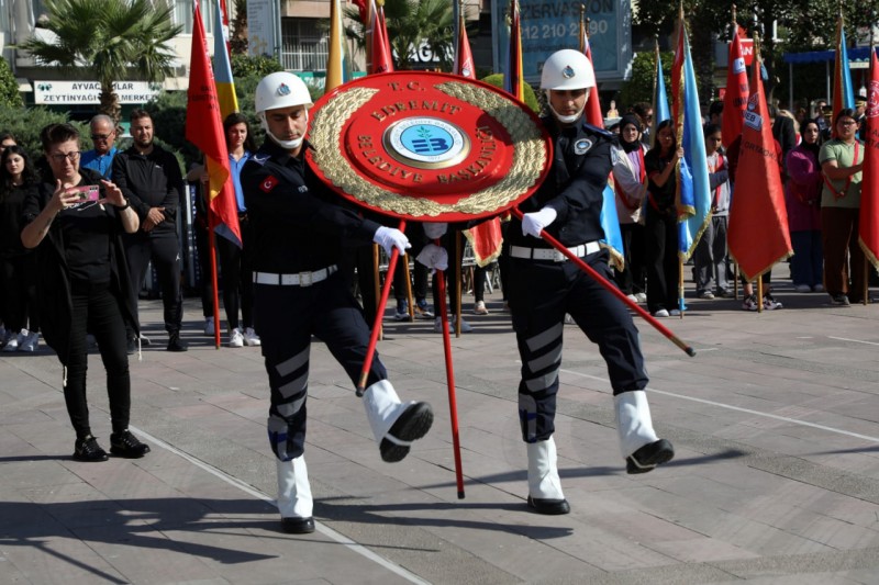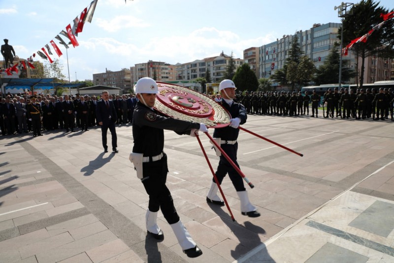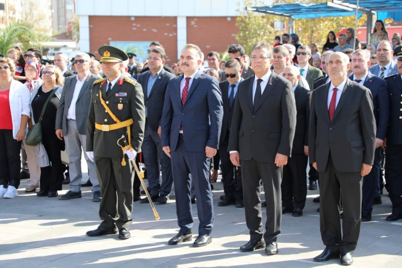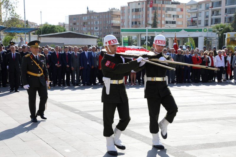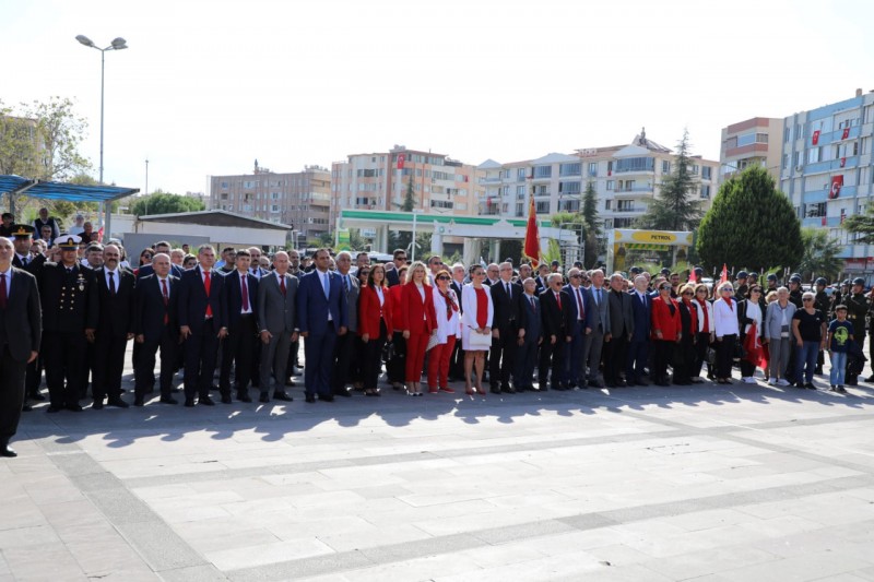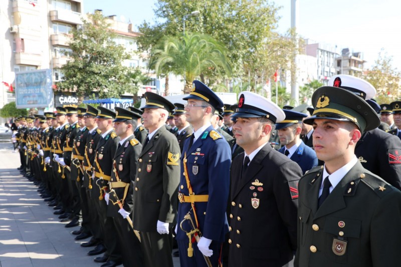 Edremit’te 29 Ekim Cumhuriyet Bayramı’nın 100. yıl dönümü kutlama programı çerçevesinde çelenk sunma töreni yapıldı. Şehit Hamdibey Meydanı’nda gerçekleştirilen törende Edremit Kaymakamı Ahmet Odabaş, 19. Komando Tugay Komutanı Tuğgeneral Ergün Fidan, Edremit Belediye Başkanı Selman Hasan Arslan tarafından Atatürk anıtına çelenk sunuldu. Kamu kurum müdürleri, siyasi parti ve sivil toplum kurumu temsilcileri, muhtarlar ve çok sayıda vatandaşın katıldığı tören saygı duruşu ve İstiklal Marşı’nın okunması ile sona erdi.