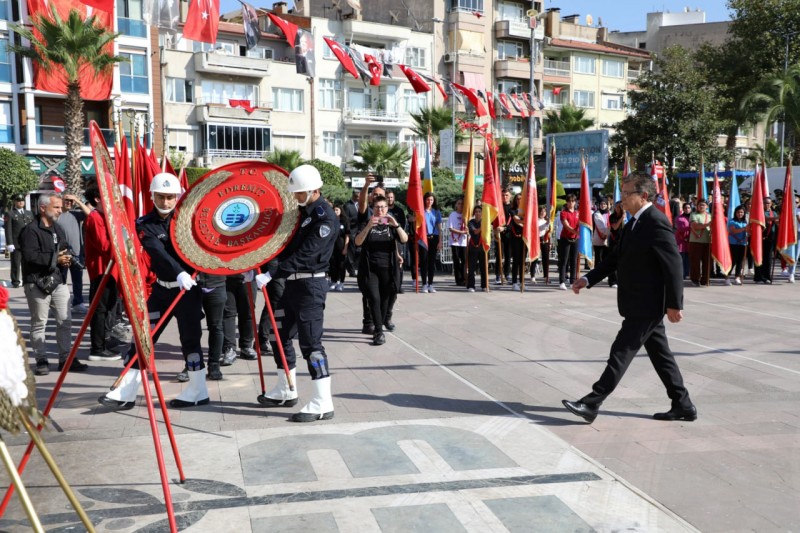 Edremit ilçesinde Cumhuriyetin 100. Yılı kutlamaları resmi çelenk sunma töreni ile başladı. Edremit Belediye Başkanı Selman Hasan Arslan, Şehit Hamdibey Meydanı’nda protokol üyeleri ile birlikte Atatürk anıtına çelenk sundu.