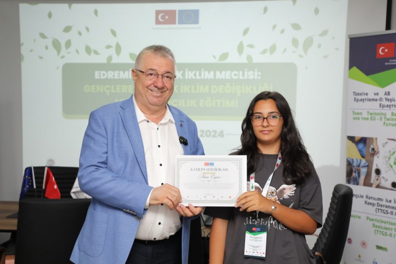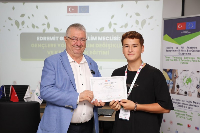 Eğitim programının sonunda gençlere sertifikalarını takdim eden Edremit Belediye Başkanı Mehmet Ertaş, “Çağımızın en önemli sorunlarından biri olan iklim değişikliğine Edremitli gençlerimizin duyarlılığı ve yapılan çalışmalarda yer almaları beni gururlandırıyor. Farklı kültürde, benzer iklim şartlarında iki ülke arasında yürüttüğümüz bu projede güzel sonuçlar elde edeceğimize eminim. Hep birlikte dünyamızı korumak için üzerimize düşen görevleri yapacak, bilinçli bir toplum oluşturarak bu konuda yapılacak her çalışmanın destekçisi olacağız.” dedi.