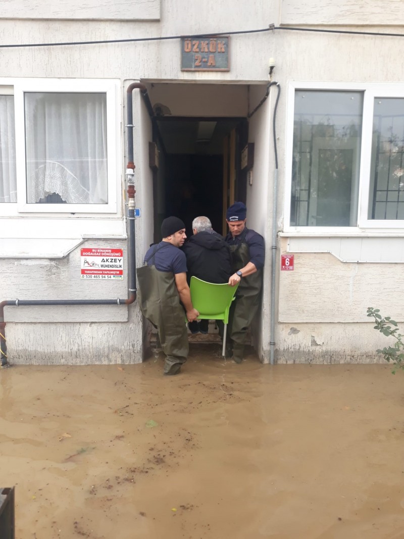 Edremit'te gece saatlerinden itibaren etkili olan lodos fırtınası ve sağanak yağış derelerde taşkınlara neden olurken, tahribatı çok ağır oldu. Çok sayıda apartmanın da bodrum ve birinci katları sular altında kaldı. Sular altında kalan dairelerde oturan kişilerin ve hastaların yardımına, Balıkesir Büyükşehir Belediyesi İtfaiye Daire Başkanlığı Edremit İtfaiye Grup Amirliği ekipleri koştu. Kimi yangın merdiveni, kimi itfaiye erlerinin sırtında, kimi sedye ve sandalye ile vatandaşlar sular altında kaldıkları evlerinden çıkartıldı. Sular altında kalan onlarca apartmanda ise suların tahliye işlemleri sürüyor. (İHA)