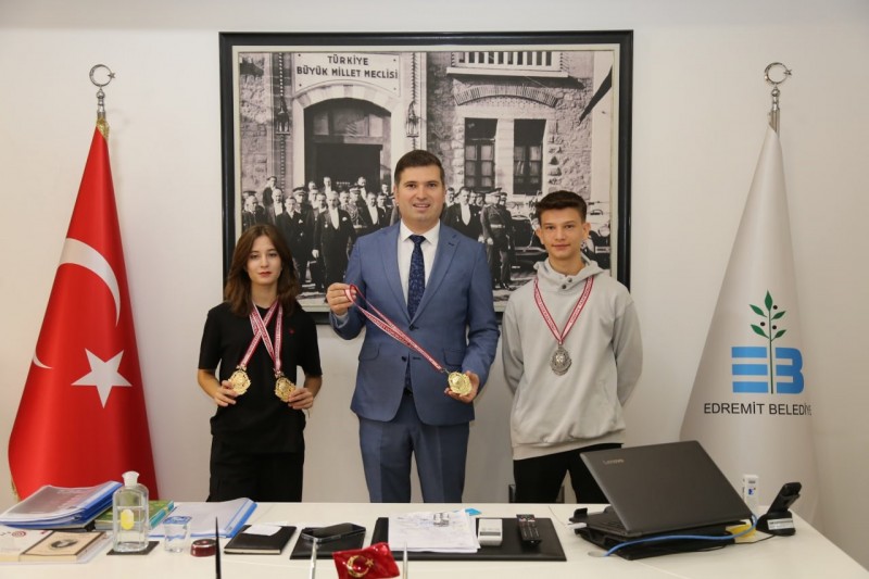 Edremit Belediyesi Taekwondo Spor Kulübü sporcuları Edremit Belediye Başkan Yardımcısı Tayfun Canlı'yı madalyalarıyla ziyaret etti.