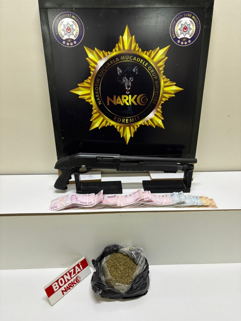 Balıkesir'in Edremit ilçesinde polis ekiplerince düzenlenen uyuşturucu operasyonunda sentetik kannabinoid, ruhsatsız av tüfeği ve yüklü miktarda para ele geçirildi.