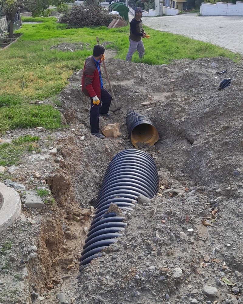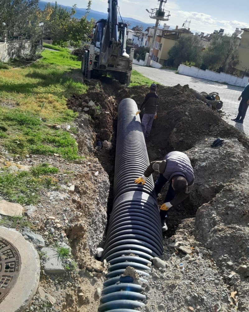 Edremit Belediyesi, kış mevsiminde yaşanabilecek olumsuzlukların önüne geçmek amacıyla sahadaki çalışmalarını aralıksız sürdürüyor. Bu kapsamda Fen İşleri Müdürlüğü ekipleri, Narlı Mahallesi’nde yeni yağmursuyu hatları döşeme çalışmalarına devam ediyor.