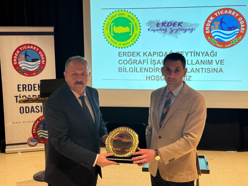 Bilgilendirme programında, coğrafi işaretli Erdek Kapıdağ Zeytinyağı'nın üretim, kullanım ve pazarlama süreçlerine ilişkin teknik ve hukuki detaylar üreticilerle paylaşıldı.