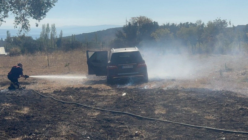 Erdek-Ocaklar yolu mevkiinde çıkan anız yangını zeytin ağaçlarına ve park halindeki bir otomobile sıçradı.