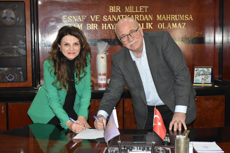 Yapılan iş birliği protokolü Şekerbank Balıkesir Müdürü Hande Camak ile TESK Yönetim Kurulu Üyesi ve Balıkesir Esnaf ve Sanatkarları Odaları Birliği Başkanı Fehmi Erdem tarafından imzalandı.