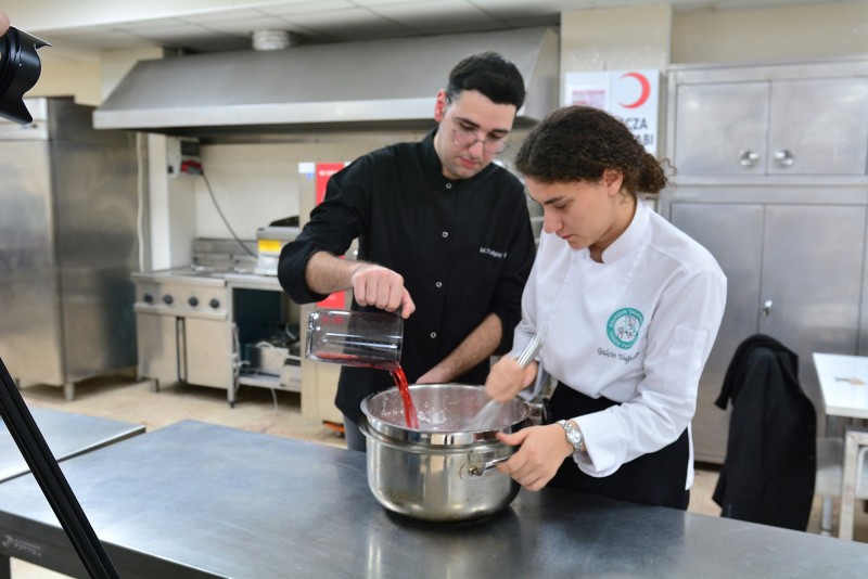 Gastronomi ve Mutfak Sanatları Bölümü uygulama mutfaklarında hazırlanan lokumlar, öğrencilerin hem mesleki becerilerini geliştirmelerine hem de Ramazan ayının paylaşma ve dayanışma ruhuna katkı sunmalarına imkân sağlıyor. Öğrenciler, akademisyenlerin rehberliğinde gerçekleştirilen üretim sürecinde geleneksel tatlardan biri olan lokumun hazırlanış aşamalarını uygulamalı olarak deneyimliyor.