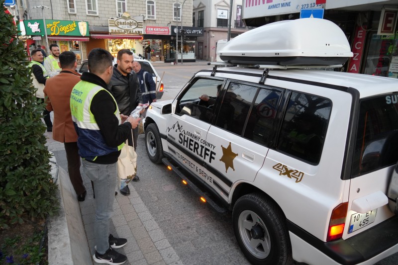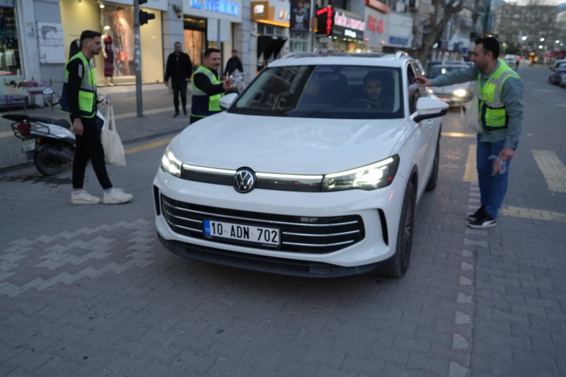 AK Parti Edremit İlçe Gençlik Kolları, iftar saatinde yolda olan ve iftara yetişemeyen vatandaşlar için "İftara Beş Kala" etkinliği ile iftarlık kumanya dağıttı.