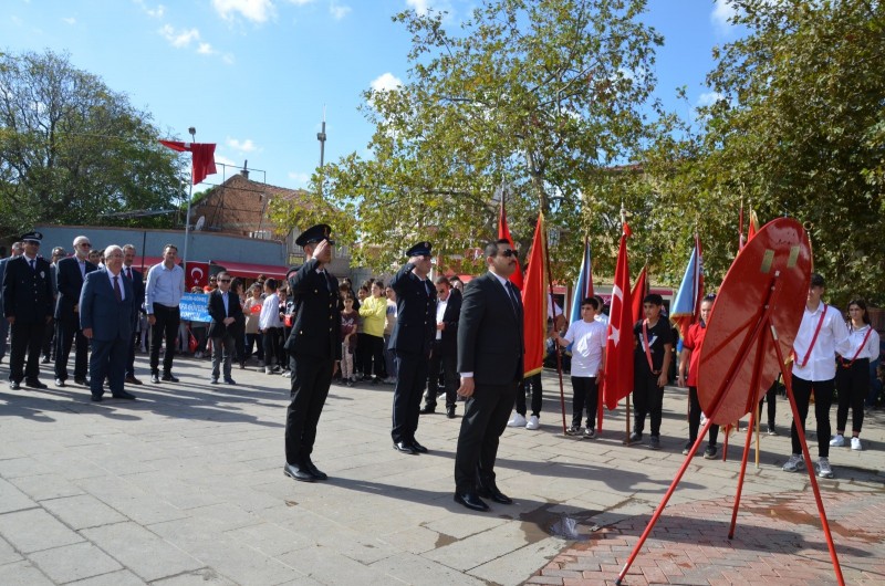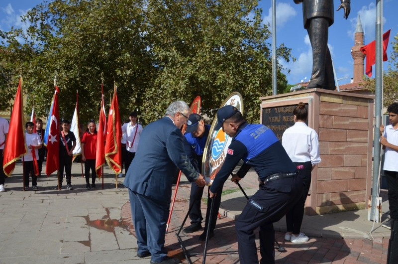 Cumhuriyet Meydanında bulunan Atatürk Anıtı'nda düzenlenen çelenk sunma törenine Kaymakam Mehmet Şirin Altay, Belediye Başkanı Mehmet İrem Himam, İlçe Emniyet Amiri Erdal Coşan, Jandarma Komutanı Onur Özdemir, siyasi parti temsilcileri, daire amirleri, gaziler, muhtarlar, öğretmen ve öğrenciler ile vatandaşlar katıldı. Atatürk Anıtına kaymakamlık ve belediye başkanlığı çelenkleri sunuldu. Ardından saygı duruşu ve İstiklal Marşı okundu. Törenler daha sonra sona erdi. (İHA)