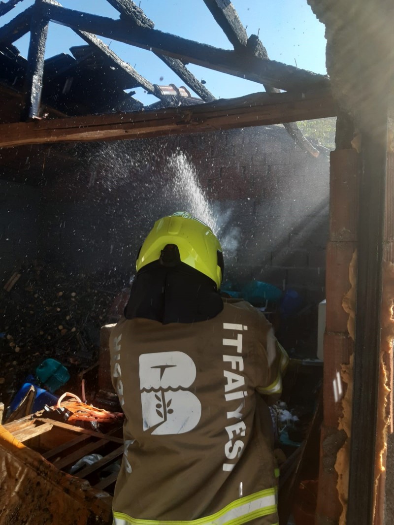 Yangında can kaybı yaşanmazken, damda maddi hasar meydana geldi. Olayla ilgili inceleme başlatıldı.