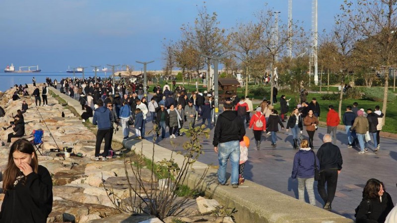 Geçtiğimiz son haftalarda soğuk hava ve sağanak yağışın etkisinde olan Bandırma'da bu hafta sonu hava sıcaklıkları hissedilir şekilde artış gösterdi. Bu durumu fırsat bilen vatandaşlar, sahili ve sokakları doldurdu. Çay ve çekirdeklerini alan bazı vatandaşlar, sahilde güneşli günün tadını çıkarttılar. (İHA)
