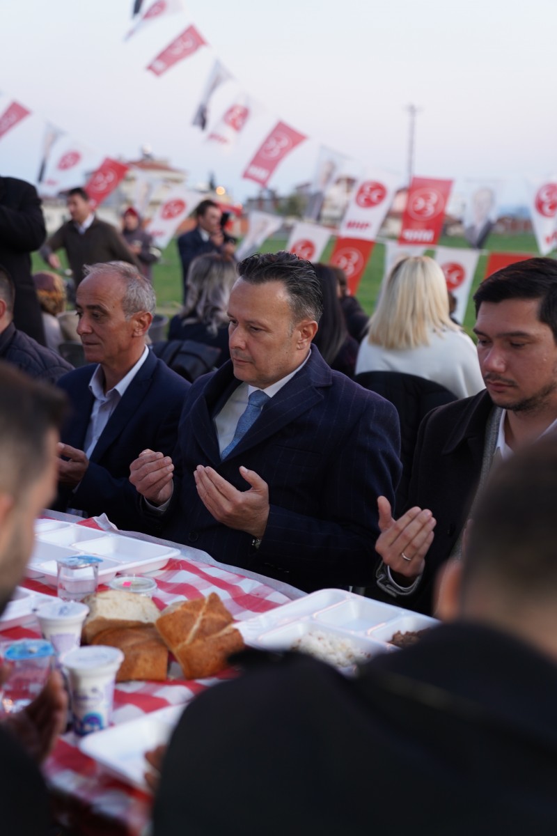Halalca mahallesinde yoğun katılımla gerçekleşen İftarda, seçim çalışmalarında geçirdiği kalp krizi sonrasında hayatını kaybeden Altıeylül MHP Meclis Üyesi adayı Ufuk Kuvetli için dualar okundu. İftar sonrası gerçekleştirilen mitingde bir konuşma yapan Cumhur İttifakı adayı Mesut Eray, seçime sayılı günler kala güçlerini artırarak çalışmalara devam ettiğinin altını çizdi. Eray, “Türkiye Belediyeler Birliği Başkanı Sayın Yücel Yılmaz, Ak Parti Genel Başkan Yardımcısı Sayın Belgin Uygur, şimdi Balıkesir bir medarı iftiharını daha gönderiyor Ankara’ya. Milliyetçi Hareket Partisi MYK Üyesi, Milletvekilimiz Ekrem Gökay Yüksel’i bir kez daha tebrik ediyorum” dedi.