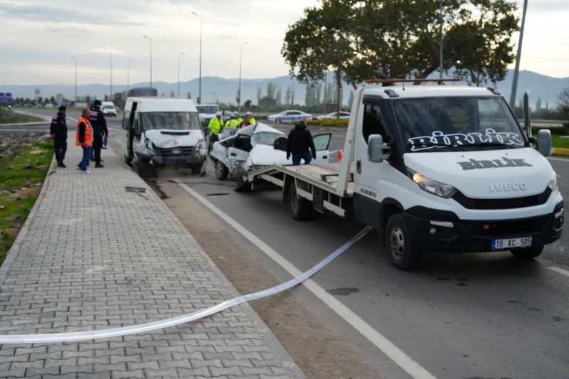 Edinilen bilgiye göre, Balıkesir - Edremit kara yolunun kırsal Çamdibi Mahallesi kavşağında meydana gelen kazada, H.K. (30) idaresindeki 10 RE 157 plakalı minibüs, Havran istikametinden Edremit yönüne seyir halindeyken, kavşaktan dönüş yapan Kemal Hırca (56) yönetimindeki 10 ABP 010 plakalı otomobille çarpıştı.