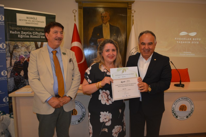 Avrupa İmar ve Kalkınma Bankası'nın katkılarıyla kurulan Komili Zeytin ve Zeytinyağı Enstitüsü tarafından Ayvalıklı kadın zeytin çiftçilere yönelik verilen eğitimlerin 6. etabı tamamlandı.