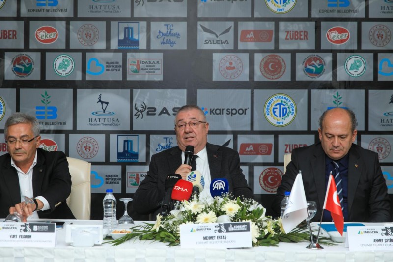 Hattuşa Vacation Thermal Club’ta düzenlenen basın toplantısına; Edremit Belediye Başkanı Mehmet Ertaş, Balıkesir Büyükşehir Belediyesi Körfez Koordinatörü Yurt Yıldırım, Kar Spor İDA Ultra Organizasyon Komitesi Başkanı Polat Dede, Hattuşa Grup Turizm Direktörü İsmail Eyvaz, Kar Spor Yönetim Kurulu Başkanı Atakan Alaftargil, Edremit Ticaret Odası Başkanı Ahmet Çetin ile çok sayıda davetli katıldı.