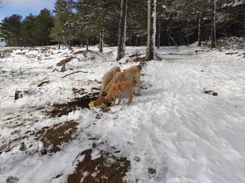 Edremit Belediyesi tarafından Kazdağları’nda çeşitli bölgelerde yaşayan sokak hayvanlarının kar yağışı sonrasında yiyecek bulmakta zorlanmamaları için bölgeye yem bırakıldı. Edremit Belediyesi’nden yapılan açıklamada “Hanlar mevkiinde etkili olan kar yağışı ile birlikte bize her zamankinden daha fazla ihtiyaç duyan can dostlarımıza mama desteğimizi arttırdık. Sevimli dostlarımızın soğuk ve karlı havadan etkilenmesi için ekiplerimiz sahada çalışmalarına devam edecekler” dedi.