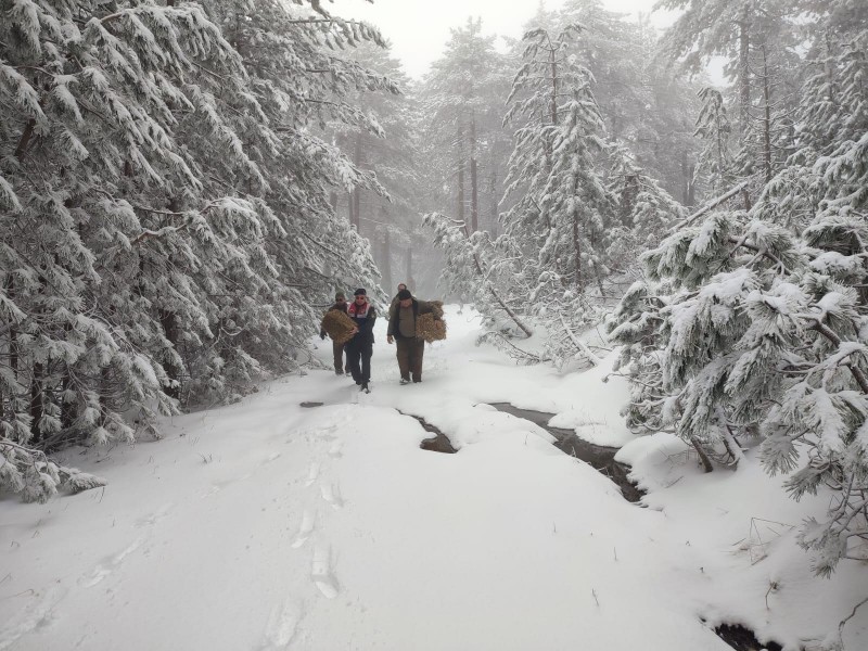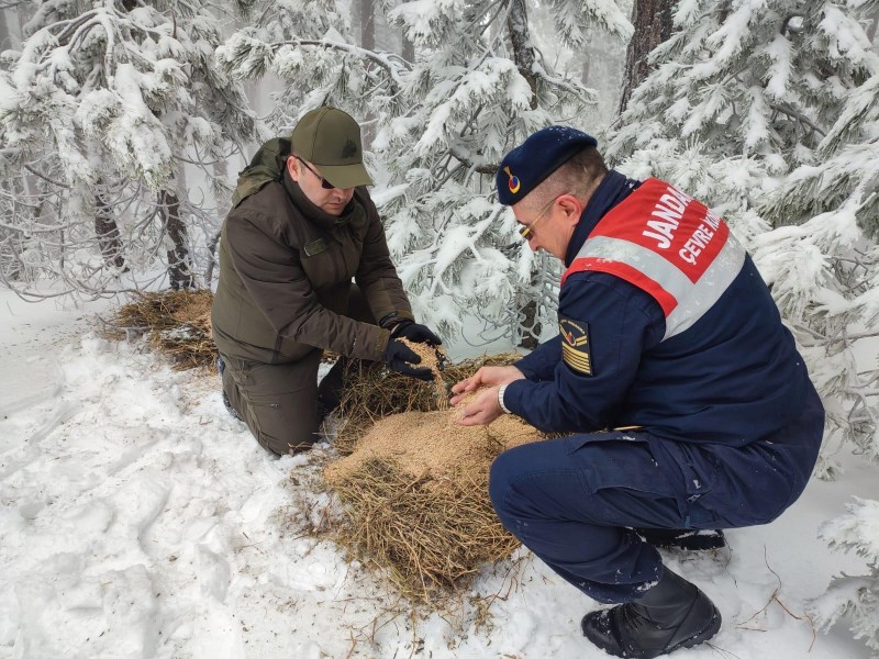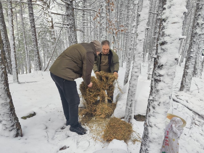 Milli Park sınırları içerisinde kalan yaklaşık 1.5 metre kar kalınlığının bulunduğu dağlık araziye, karacalar için saman, kuşlar için de yem bırakıldı.