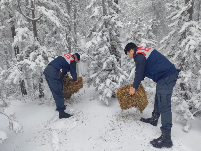 Yaklaşık bir aydır karla kaplı Kazdağları’nda kış aylarında yiyecek sıkıntısı yaşayan yaban hayvanları ile kuş türlerinin zorlu şartlarda aç kalmasını önlemek ve yerleşim merkezlerine inmesinin önüne geçmek amacıyla yaban hayatına yem takviyesi yapıyor.