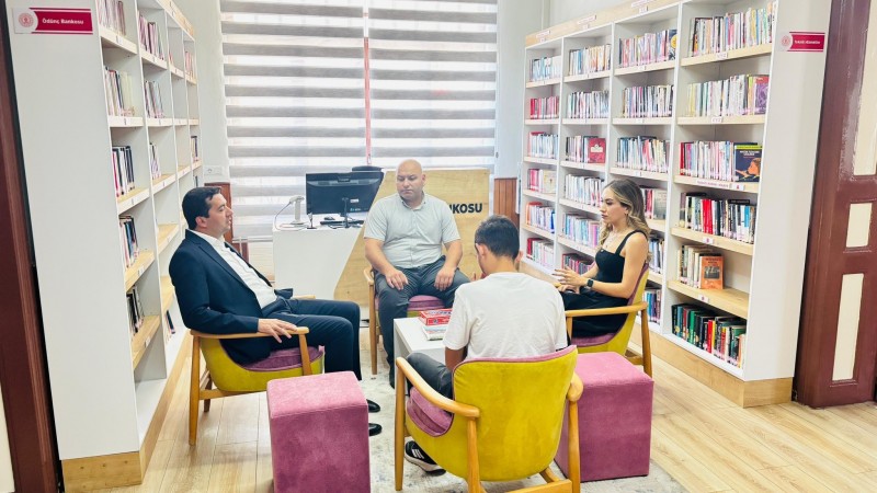 Kütüphane Sorumlusu Selin Güngör'den çalışmalar hakkında detaylı bilgi alan Kaymakam Evlice, öğrencilere ve vatandaşlara sunulan hizmetleri yerinde inceleme fırsatı buldu.
