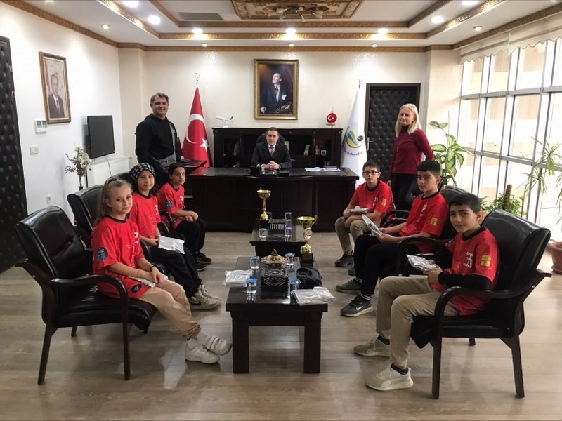 Kaymakam İlyas Memiş, hentbol de dereceye giren öğrencileri kabul etti. Başarılı sporcuları kutlayan Kaymakam, çeşitli ödüller verdi.