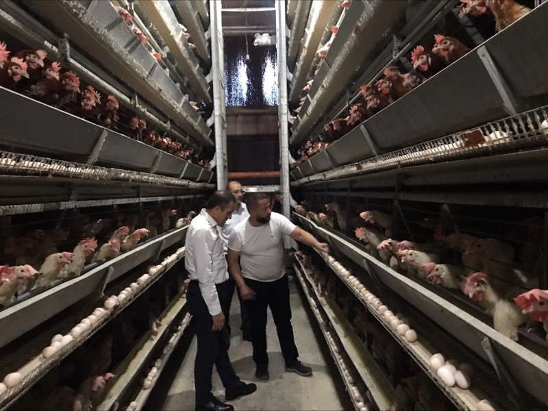 İlçedeki tavukçuluk ve et üretim tesislerini ziyaret eden Kaymakam Memiş, işletmeler hakkında bilgi alırken, üretimin artırılmasını istedi.