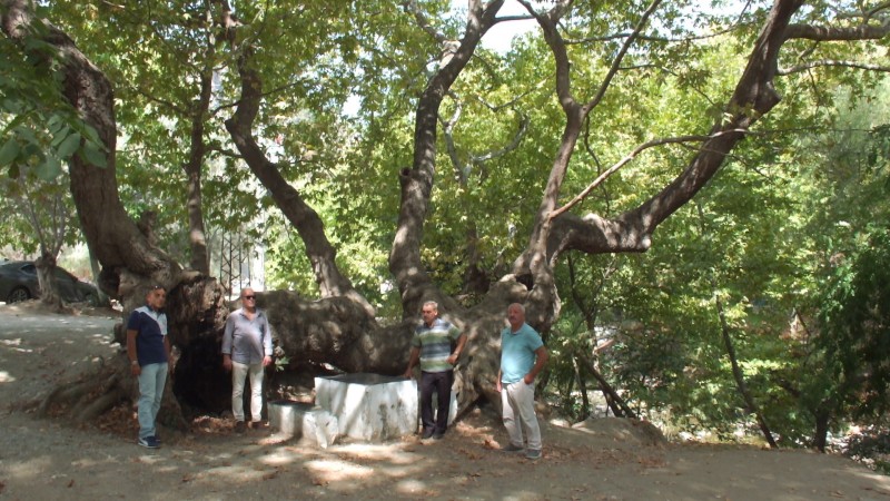 Edremit ilçesinde, Kazdağındaki Şahinderesi kanyonunda yer alan 750 yıllık çınar ağacı yaşı ve ilginç yapısı ile dikkat çekiyor.