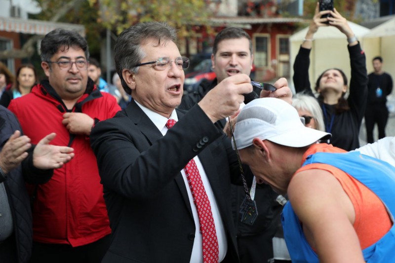 Maratonda dereceye girenlere madalyaları Edremit Belediye Başkanı Selman Hasan Arslan ve Edremit Belediye Başkan Yardımcısı Tayfun Canlı tarafından verildi. (Edremit Belediyesi)