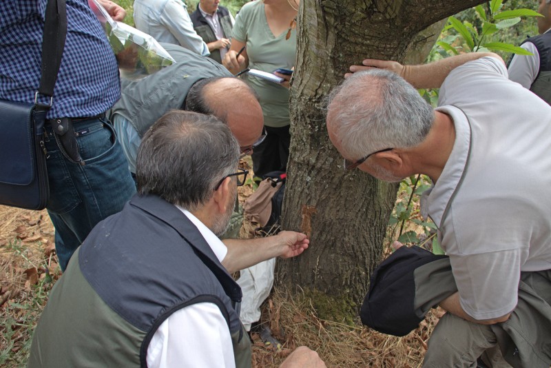 Orman Genel Müdürlüğü Orman Zararlılarıyla Mücadele Dairesi Başkanı Şaban Bıyıklı, başta kestane ağacı zararlısı "Kestane Gal Arısı" olmak üzere diğer orman zararlıları ile mücadele ve ormanların korunması konularını incelemek üzere Balıkesir'deydi. Orman Genel Müdürlüğü Orman Zararlılarıyla Mücadele Dairesi Başkanı Şaban Bıyıklı, Balıkesir Orman Bölge Müdürü Kemal Kayıran eşliğinde Bandırmaya geçerek, Balıkesir Bölge Müdürlüğü sorumluluk alanındaki kestane ormanlarının gelişimine ve meyve verimine zarar veren “Kestane Gal Arısı” ve diğer zararlıların kestane ağaçları üzerindeki etkilerini beraberindeki heyette yer alan, Prof. Dr. Hatice Tuğba Doğmuş Lehtijari, Prof. Dr. Stephan Woodward, Doç. Dr. Erdem Hızal, Dr. Sabiha Acer Gülçin ve Biyolog Gülçin Ekemen ile birlikte yerinde inceledi. İncelemelere; Balıkesir Orman Bölge Müdürlüğü Bölge Müdür Yardımcısı Nejdet Güdül, Orman Zararlılarıyla Mücadele Dairesi Başkanlığı Orman Zararlılarıyla Mücadele Şube Müdürü Akın Emin, Orman Zararlılarıyla Mücadele Şube Müdürü Mehmet Aslan, Bandırma Orman İşletme Müdürü Faruk Tuna Yüksek, Şube ve İşletme Müdürlüğü Teknik Personeli ile Yöre halkı ile Sektör temsilcileri katılım sağladılar. İncelemelerde kestane ağaçlarının sağlığına kavuşturulması için yapılması gereken biyolojik ve mekanik mücadele yöntemleri üzerinde durarak, çözüm yolları üzerinde görüş alışverişinde bulundular. (Rabia Şevval Çakmak)