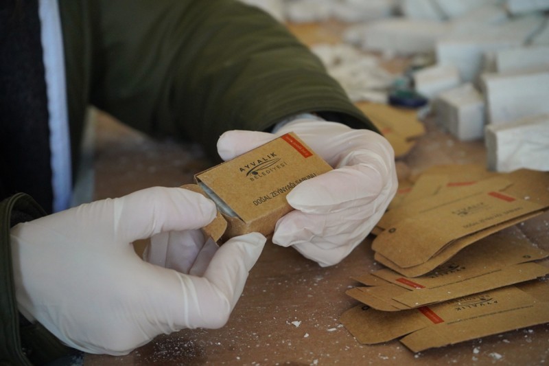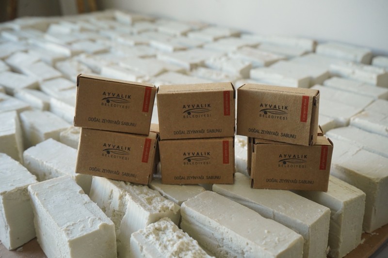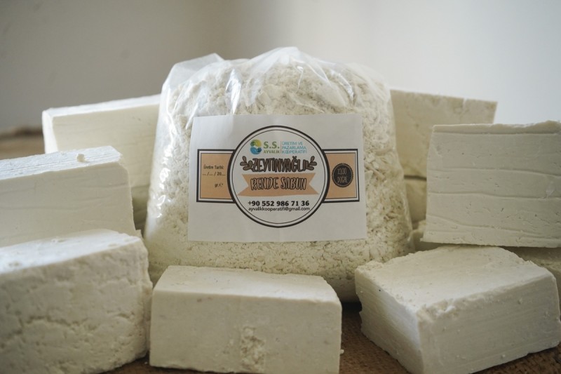 Ayvalık Belediyesi Üretim Ve Pazarlama Kooperatifi’nin Küçükköy’deki üretim mutfağında kurulan sabun atölyesi en doğal sabunları üretiyor.