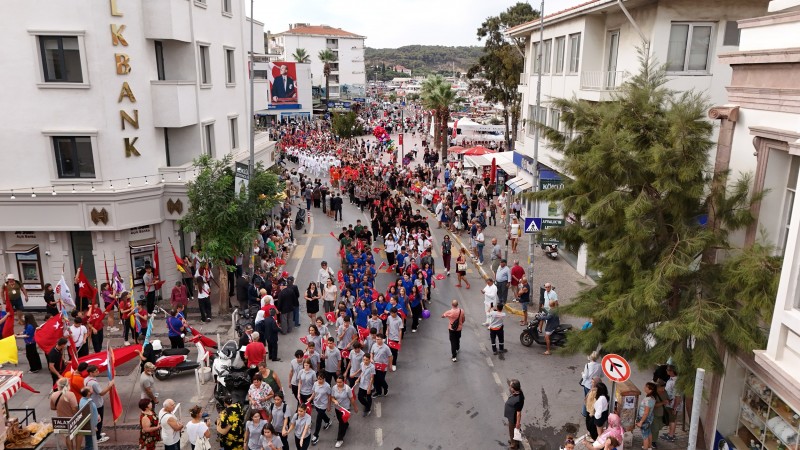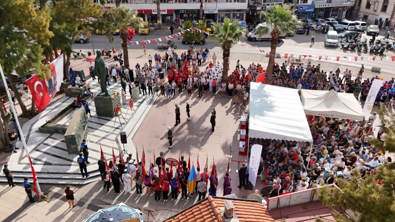 Cumhuriyet Meydanı’nda ellerinde Türk bayraklarıyla yerlerini alan Ayvaklılar, milli birlik ve beraberlik ruhunu bir kez daha en güçlü şekilde hissetti. Saygı duruşu ve İstiklal Marşı ile başlayan programda konuşmaların ardından öğrencilerin okuduğu şiirler, halk oyunları gösterileri ve çeşitli etkinlikler yer aldı. Katılımcılar, hem coşkulu hem de duygu dolu anlar yaşadı. Etkinlikler, selamlama ve bando’nun çaldığı marşlar eşliğinde kortej yürüyüşüyle tamamlandı.Törende konuşan Ayvalık Belediye Başkanı Mesut Ergin, tarihin en gururlu günlerinden birini kutlamak üzere bir araya geldiklerinin altını çizdi.