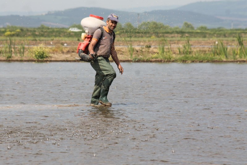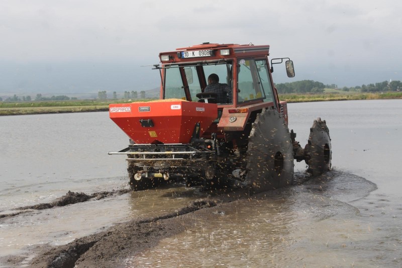 Ülkemizin çeltik depolarından Manyas ve Gönen ilçelerinde geçtiğimiz hafta başlayan çeltik ekimleri tüm hızıyla devam ediyor. Son yıllar da çeltik ekimlerinde dron kullanılmaya başlandığı bunun yanında ise traktör, sırt pompası ve el ile serpme şeklinde yapıldığı ve dekar başına 30 kg tohum kullanıldığı belirtildi. Geçtiğimiz yıl 70 bin çeltik ekiminin yapıldığı Manyas'ta bu yıl ise ekim alanının artarak 80 bin dekara yükseldiğini söyleyen Manyas Ziraat Odası başkanı Kudret Özden "Şu ana kadar yüzde 30-35 ekim yapılmış durumda, 50’nin üzerinde çeltik tohum çeşidi var, Osmancık türleri bölgemizde daha ağırlıklı olarak ekiliyor, Osmancık türlerinde biraz verim fazlalığı var, ancak yeni çıkan iri taneler de iyi verim veriyor, Osmancık türü çeşitleri aratmıyor," diye konuştu.