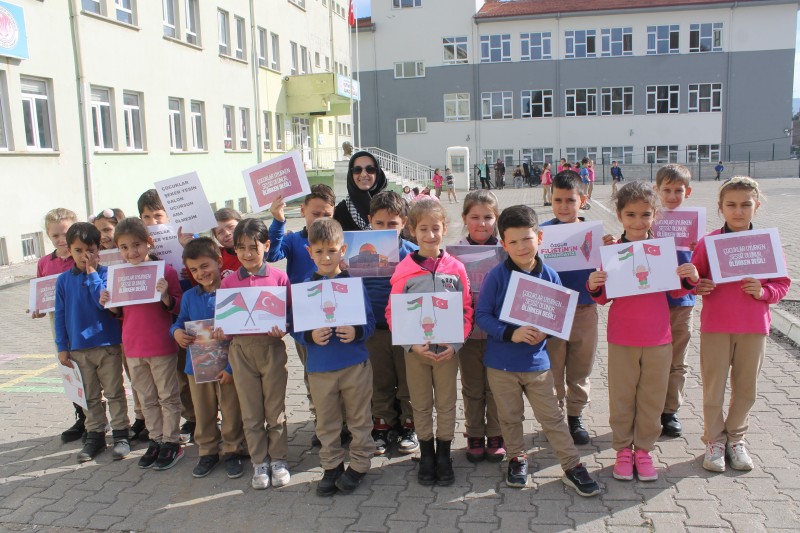 Manyaslı öğrenciler, İsrail'in işgali altındaki Filistin'deki çocuklar için yardım kampanyası düzenledi.
