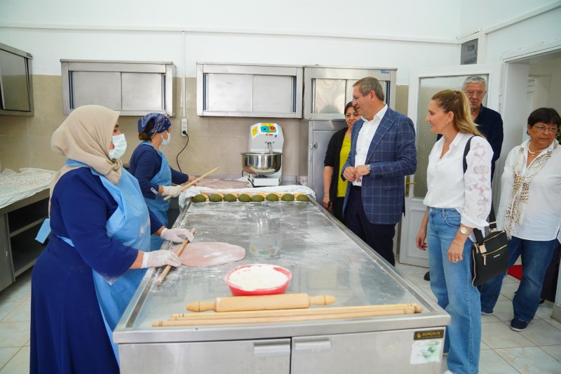 Üretim ve Pazarlama Kooperatif'i’nin Küçükköy'deki üretim mutfağında kış hazırlıkları yapan kadınları ziyaret eden Ayvalık Belediye Başkanı Mesut Ergin, satışa sunulan tüm ürünlerin güvenle tüketilebileceğini söyledi. Ayvalıklı kadınlara da seslenen Başkan Ergin, “Siz de aile bütçenize katkı sunmak isterseniz üretim mutfağımız ile iletişime geçebilirsiniz” dedi. (Necdet Pekmezci)