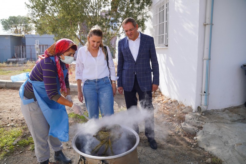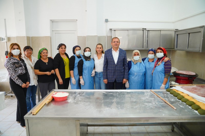 Tamamen organik, hijyenik ortamda titizlikle hazırlanan; renkli erişte, ekşi maya ekmek, zeytin reçeli ve kozalak pekmezine kadar her şey üretim mutfağındaki marifetli ellerden çıkıyor. Ürünler, Talatpaşa Caddesi’nde sebze hali girişindeki kooperatif mağazasında ve online olarak uygun fiyatlarla satışa sunuluyor. Üretim ve Pazarlama Kooperatif'i’nin Küçükköy'deki üretim mutfağında kış hazırlıkları yapan kadınları ziyaret eden Ayvalık Belediye Başkanı Mesut Ergin, satışa sunulan tüm ürünlerin güvenle tüketilebileceğini söyledi. Ayvalıklı kadınlara da seslenen Başkan Ergin, “Siz de aile bütçenize katkı sunmak isterseniz üretim mutfağımız ile iletişime geçebilirsiniz” dedi. (İHA)