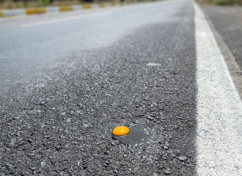 Erdek ilçesinde mevsim normallerinin üzerinde seyreden ve 45 derece olarak hissedilen sıcaklık nedeniyle vatandaşlar, sıcak havanın etkisini göstermek amacıyla asfalt ve mazgallar üzerinde yumurta pişirmeyi denedi.
