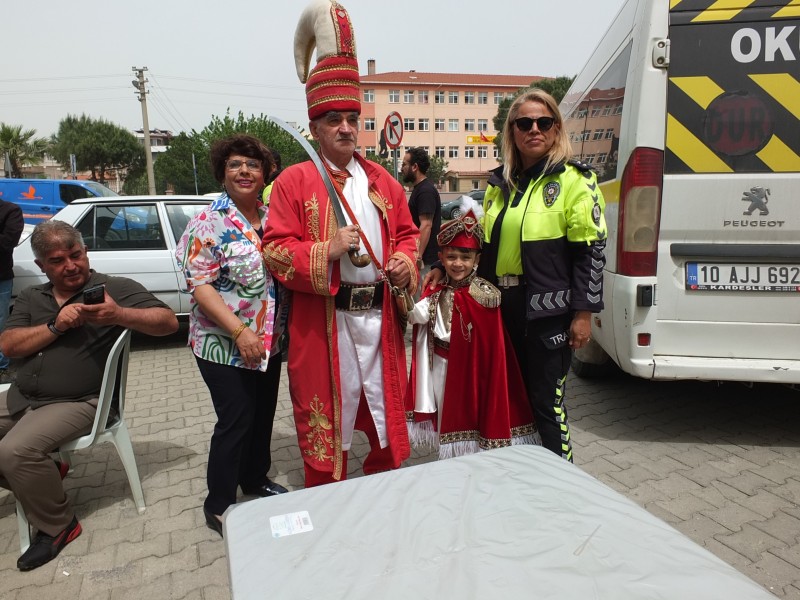 Beden Eğitimi Öğretmeni Onur Durmaz, oğlu Mert Kıvanç için yaptığı sünnet cemiyetinde sahne alan mehter takımı ilgiyle izlendi. Balıkesir Mehteran Takımı, cemiyete gelen misafirleri söylediği marşlar ile coşturdu. Mehteran başı Mücahit Çetin, “Bu kültürü yaşatma adına gayret gösteriyoruz. Sadece sünnet değil, gelin alma, düğün, asker uğurlama gibi bir çok etkinlikte yer alıyoruz” dedi.