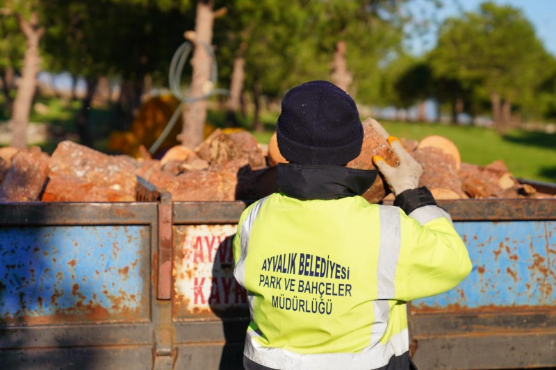 Ayvalık Belediyesi Park ve Bahçeler Müdürlüğü ekipleri, ağaçların budanmasından elde edilen odunları, dar gelirli vatandaşlara ulaştırıyor.