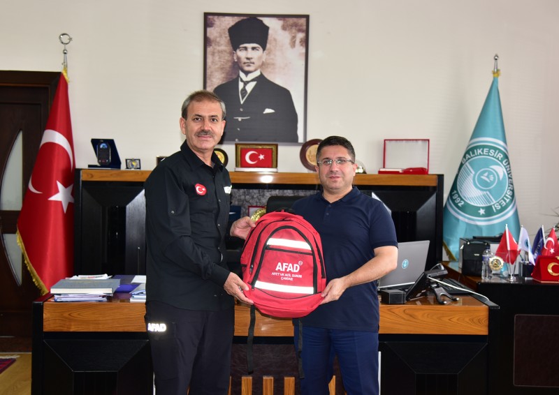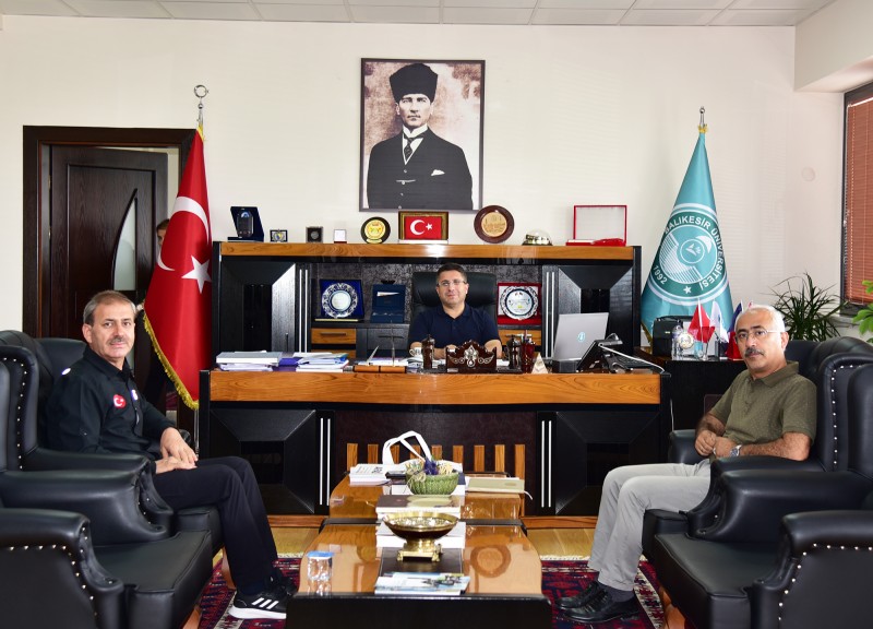 Balıkesir İl Afet ve Acil Durum Müdürü Bayram Şahin, Balıkesir Üniversitesi Rektörü Prof. Dr. Yücel Oğurlu’yu makamında ziyaret etti.