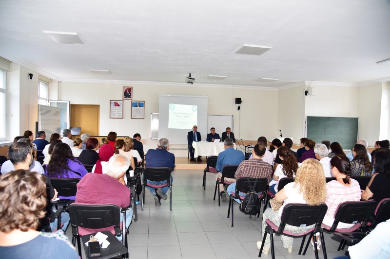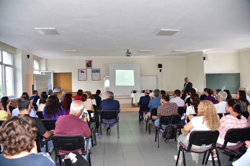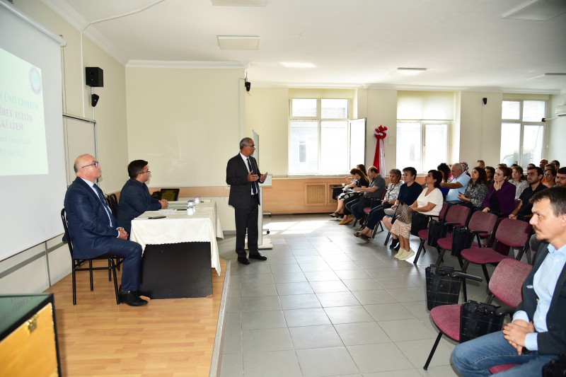 Necatibey Eğitim Fakültesi Halil İnalcık Konferans Salonundaki toplantıda, Necatibey Eğitim Fakültesi Dekanı Prof. Dr. Mehmet Baştürk ile fakülte akademik personeli yer aldı.