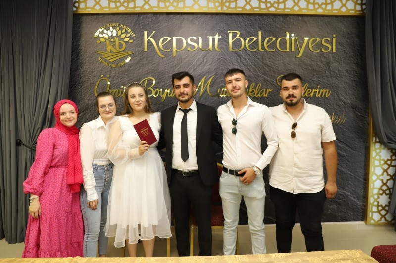 Kepsut Belediyesinde Yazıişleri Müdürü Osman Eskitürk, evlenen oğlu Alihan ve Cansu'nun nikahını kıydı. Aynı zamanda Alihan'ın doğum günü pastası da nikah sonrası kesilerek, kutlandı.