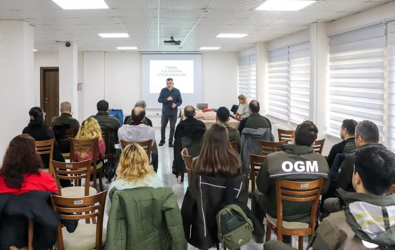 Verilen eğitim kapsamında; Bilinç kontrolü, Solunum yolu açma, Kalp masajı, Kan durdurma, Yaraların temizlenmesi ve bandajlama, Zehirlenme durumunda ilk yardım, Yaralanmalarda ve yanıklarda ilk yardım, Kaza ve yaralanma çeşitlerine göre ilk yardım, Yaralı ve kazazede taşıma teknikleri ile, Yaralıya ilk müdahalede dikkat edilmesi gereken hususlar hakkında sunum eşliğinde bilgiler verilerek personele uygulamalar da yaptırıldı.