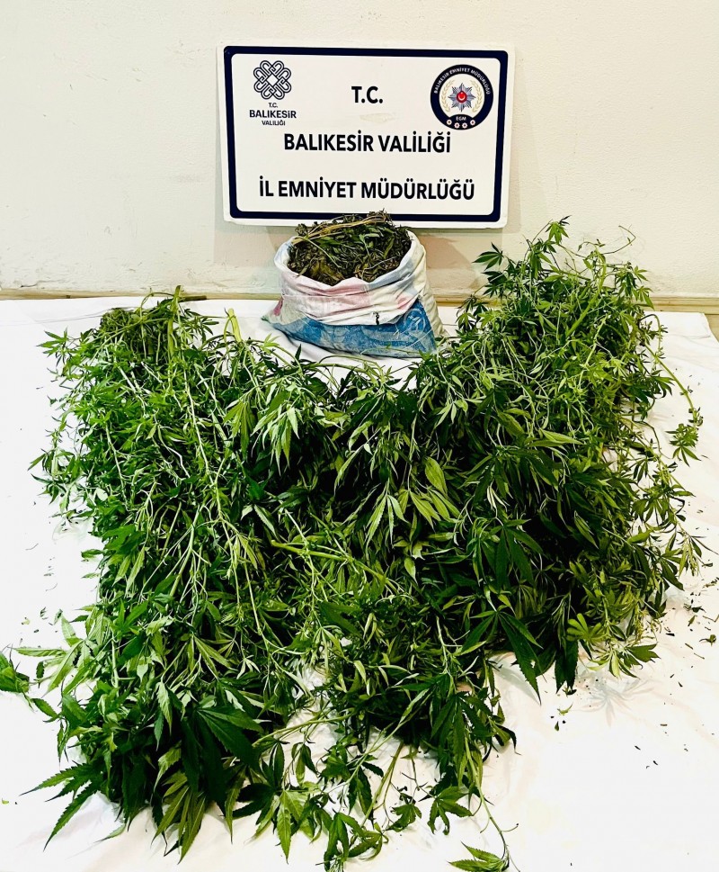 Gönen ilçesinde polis ekiplerince düzenlenen operasyonda 14 kilo 180 gram kurutulmaya bırakılmış esrar ve 16 kök ekili kenevir bitkisi ele geçirildi.