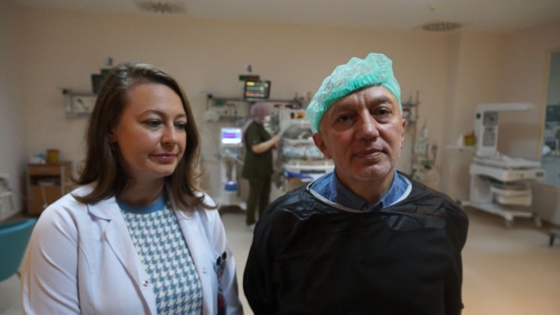 Yeni Doğan Uzman Doktoru Atika Çağlar ise 26 hafta ve bin gram doğan bebeğin, kalpten çıkan ana damar arasındaki açıklığının ilaç tedavisi ile geçmediğini belirterek, cerrahi müdahele gerektiğini dile getirdi. Çağlar, "Normalde hocamızın da bahsettiği gibi kalpten çıkan iki ana damar arasında bir açıklık oluyor doğmadan önce. Doğduktan sonra bunun kapanması gerekiyor. Fakat pramature olan bebeklerde bu damar genellikle açık olarak doğuyor ve çoğunlukla ilaç tedavisiyle düzeliyor. Bizim bebebiğimizde ilaç tedavisini 4-5 kez denememize rağmen hiç bir şekilde tedaviye yanıt alamadık. Ameliyat olması gerekiyordu. Çünkü bu damarın açıklığı ile bebeğin yaşaması mümkün değil. O yüzden ameliyat olması gerektiği için ve biz de çocuk kalp damar cerrahisi olmadığı için 112 ile sevk talebinde bulunduk. Fakat bu bebeklerin normalde yerinde yani yatak başında ameliyat olması en uygun olanı. Çünkü bu bebekler nakili kaldıramıyorlar. Yani 112 ile başka ile gidip tekrardan buraya gelmeyi kaldıramıyorlar. Bizim bebeğimiz de bu şekildeydi stabil olmadığı için. Biz de Ali Rıza hocamızla irtibata geçtik ve sonrasında da hocamızın çalıştığı hastaneden izinlerin alınması ile ilgili İl Sağlık Müdürümüz, Kamu Hastaneler Başkanımız, Başhekimimizin katkıları ile buraya transferini sağladık. Ve yaklaşık 1 saat süren operasyon sonucunda bebeğimiz sağlığına kavuştu. Ben Ali Rıza hocaya ve tüm bunu sağlayan büyüklerimize teşekkür ediyorum" şeklinde konuştu.