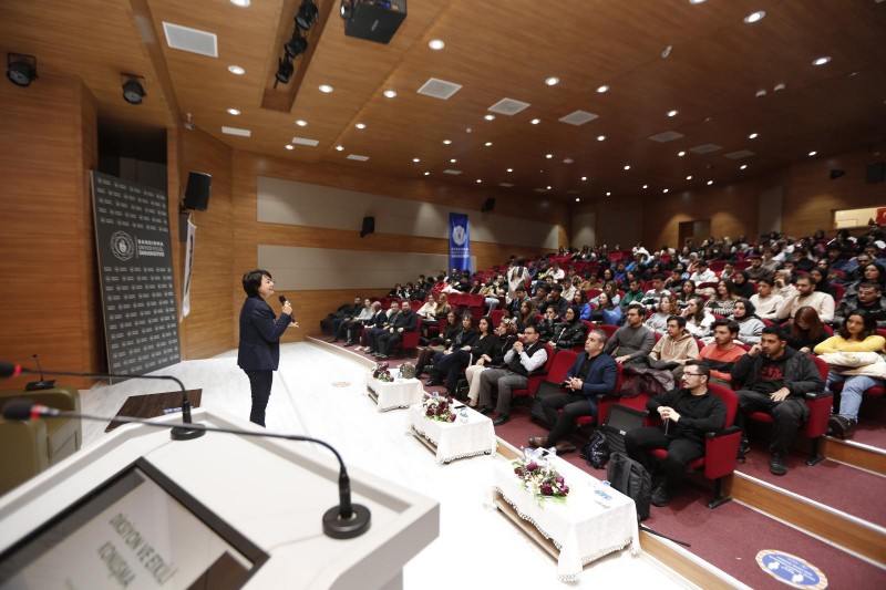 TRT Radyo 1 "Işık Tutanlar" programı yapımcısı ve sunucusu Zeynep Bayraktutan'ın konuk olarak katıldığı konferansta, öğrencilere yönelik etkili iletişim kurma becerileri üzerine bir sunum gerçekleştirildi ve program soru cevap bölümüyle sona erdi. (Ebru Erdem)