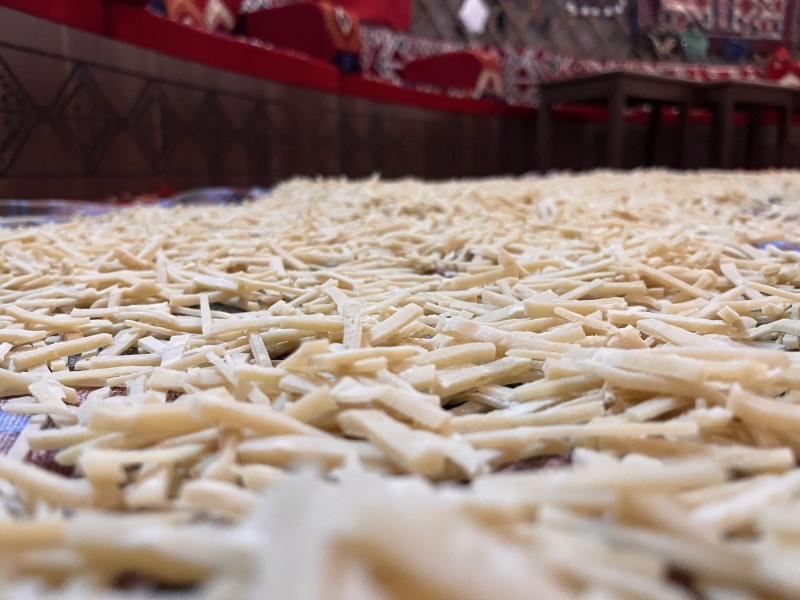 Geleneksel yöntemlerle hazırlıklarını yaptıklarını, bir kısmının da Akpınar Yaşam Merkezinde satışa sunulduğunu belirten Fatma Oya Kocataş “Bugün komşularımızla toplandık. Yörük çadırında makarnalarımızı yaptık. Öğlen başladık bu saat oldu daha hala makarnanın sonuna geliyoruz. Makarnamızın içine un, süt, yumurta, yoğurt koyduk. Bunları böyle pişiriyoruz bu şekilde, bunları ince ince kıyıyoruz. Kıydıktan sonra mendillere koyuyoruz, seriyoruz ve kurutuyoruz.”