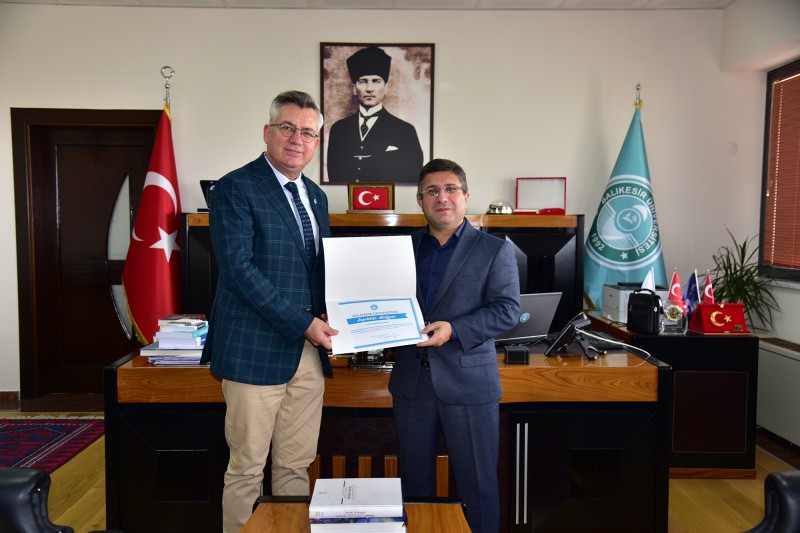 Rektör Prof. Dr. Yücel Oğurlu; Edremit Sivil Havacılık Yüksekokulu Müdürü Prof. Dr. Abdullah Soykan ile proje ekibinden Doç. Dr. Seyhun Durmuş, Çanakkale Onsekiz Mart Üniversitesinden Öğr. Gör. Dr. Cumali Yaşar ve Mellis Eğitim Teknolojilerinden Caner Anda'yı desteklenmeye layık görülen projeleri dolayısıyla tebrik ederek teşekkür belgesi takdim etti. Projeleri kabul edilen akademisyenler de Rektör Oğurlu’ya ilgi ve destekleri için teşekkür etti.
