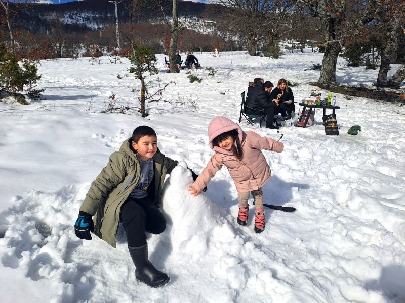 Balıkesir’de kar yağışı, merkezde etkili olmasa da yüksek kesimlerde kendini gösterdi. Geçtiğimiz günlerde soğuk ve kar yağışlı havanın etkisiyle Çataldağ, kar severlerin uğrak noktası oldu. Hafta sonu güzel havayı fırsat bilen Balıkesirliler, karın keyfini çıkarmak için dağa yöneldi. Aileler çocuklarıyla birlikte kar topu oynayarak eğlenceli anlar yaşarken, bazıları da piknik yaparak doğanın tadını çıkardı. Çataldağ'ın beyaz örtüsü altında, hem karın hem de güzel havanın tadını çıkaran vatandaşlar, kış mevsiminin keyfini doyasıya yaşadı. Hafta sonunu Çataldağ'da geçiren İlker Tunçay, "Çocuklarımızı gezdirmek için geldik. Kar bize gelmedi bu sene biz kara geldik. Akşamüzeri de döneceğiz" dedi.